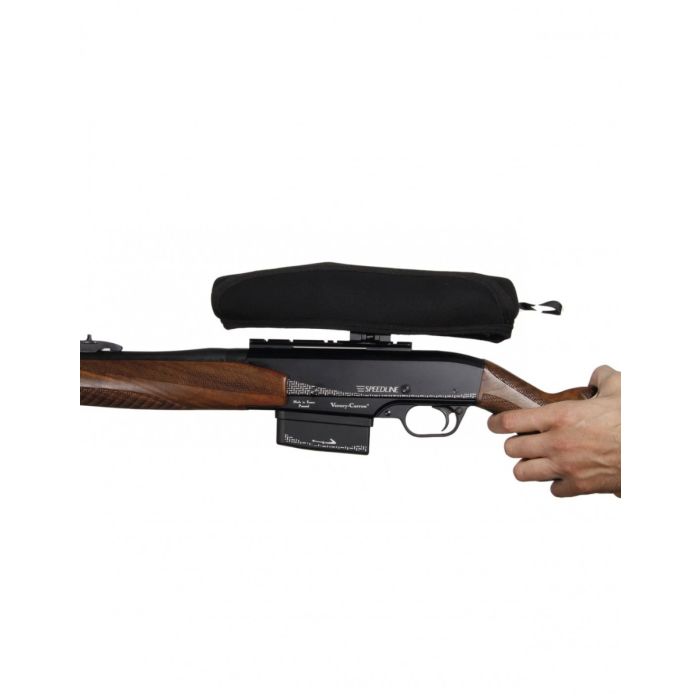 Narejen je iz oblazinjenega, prožnega materiala, ki pomaga absorbirati manjše udarce in preprečuje praske ali poškodbe občutljive optične opreme. Pokrov ostane varno na mestu in ga je mogoče enostavno odstraniti, ko je puška pripravljena za uporabo.