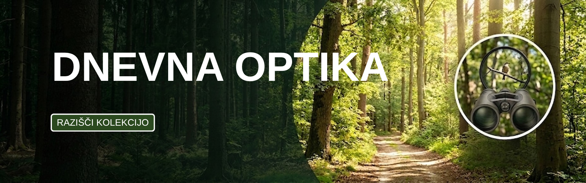 V naši ponudbi boste našli daljnoglede, dvoglede, strelne merke, optične namerilne naprave in druge optične dodatke, ki zagotavljajo ostro sliko, visoko prepustnost svetlobe ter robustno izdelavo za uporabo na terenu. Dnevna optika je idealna izbira za lov v jasnih pogojih, streljanje na večje razdalje ali opazovanje divjadi v naravnem okolju.